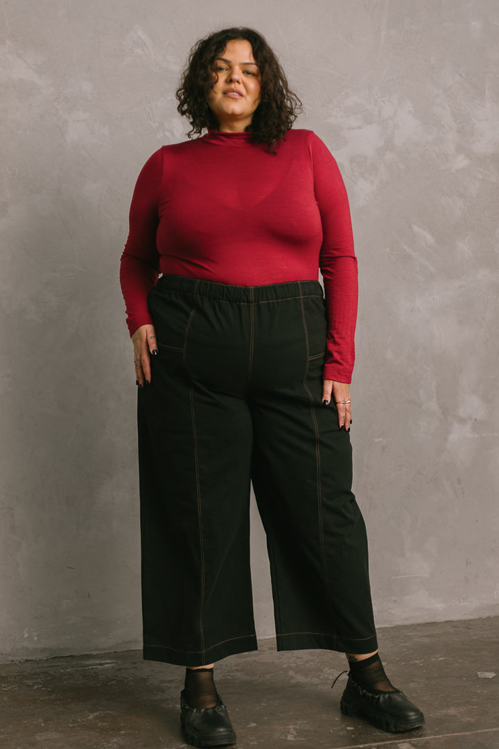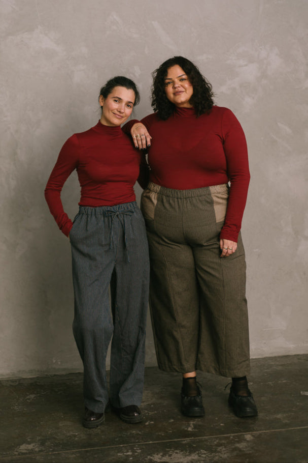 A Sanct pant has been designed with sizes 8-30+ in mind from the outset. We craft pants that allow movement and fluctuating bodies, with elastic waistbands being utilised for a comfortable all-day fit.