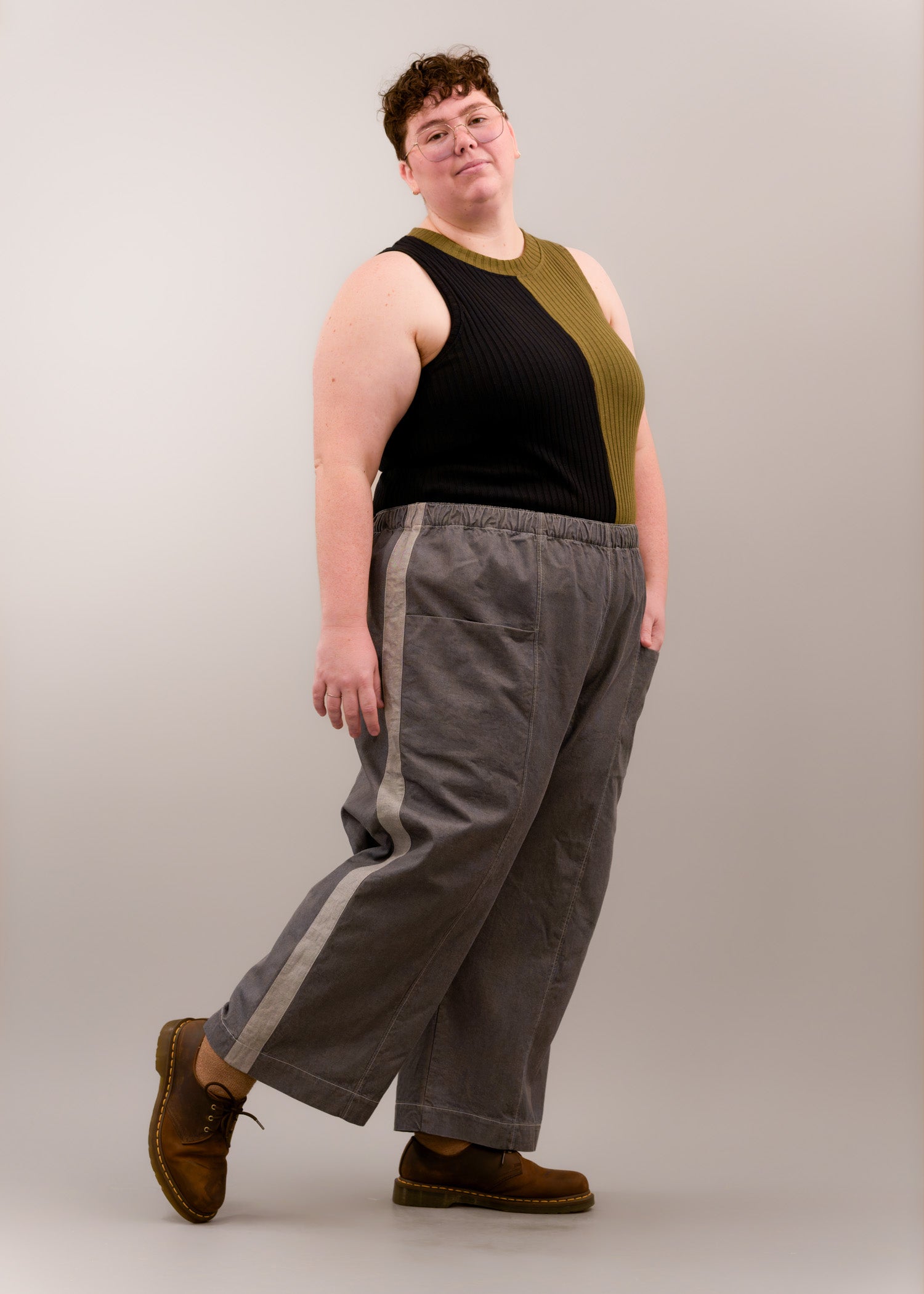 A Sanct pant has been designed with sizes 8-30+ in mind from the outset. We craft pants that allow movement and fluctuating bodies, with elastic waistbands being utilised for a comfortable all-day fit.